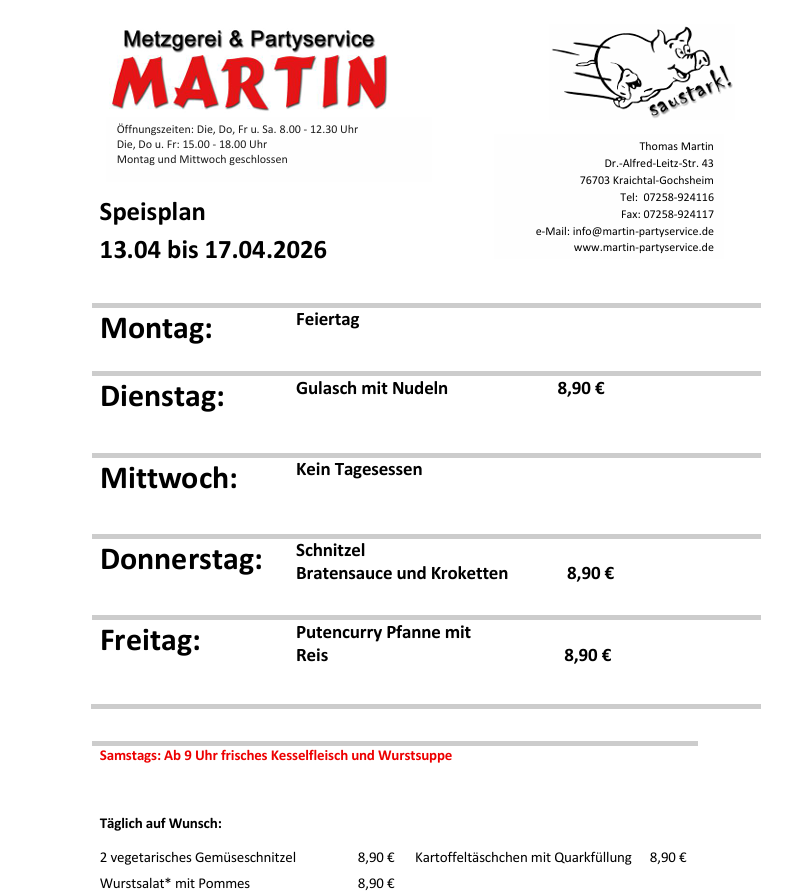 Zusätzlich bieten wir seit 2025 verschiedene selbstgemachte Produkte in Gläsern an. Hierunter zählen Soßen, Currywurst, Fonds oder unser begehrter Fleischkäse, der „Gochze Hopfer“. Wir arbeiten mit viel Herzblut daran, uns auch in diesem Bereich stetig zu verbessern und neue Ideen in die Tat umzusetzen.